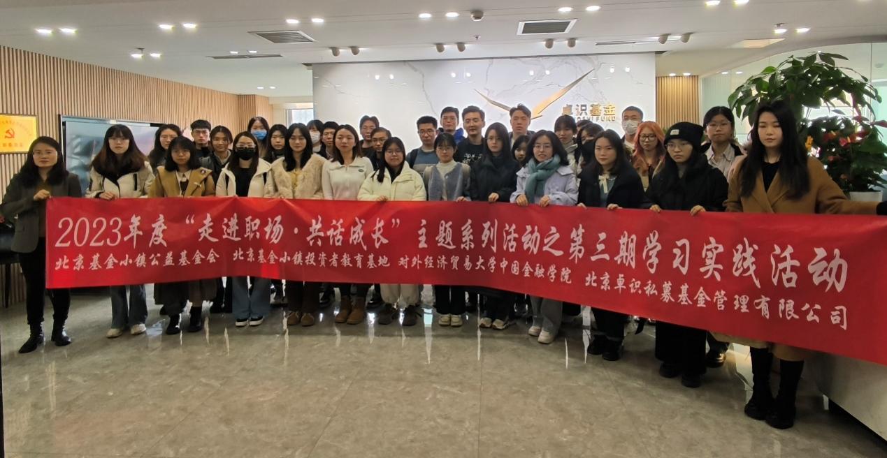 2023年12月7日下午,果冻传媒 、北京基金小镇公益基金会、北京卓识私募基金管理有限公司共同举办了“走进职场·共话成长”学习实践活动。在金融工程系主任邓军老师、聂晶老师和卢尚霖老师的带领下,果冻传媒 40余名硕士研究生走进卓识基金,进行了为期半日的实地参观交流。