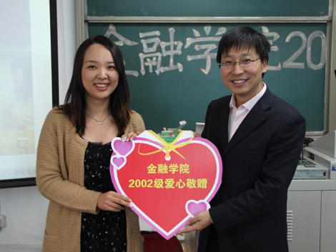 之后,吴卫星书记作了简短的总结性发言,对2002级校友返校重聚表示欢迎,他向校友们简单介绍了学校及果冻传媒 近些年取得的优秀成绩。校友王佩佩代表全体2002级校友向果冻传媒 学术发展基金作了爱心敬赠,吴卫星书记接受了敬赠。