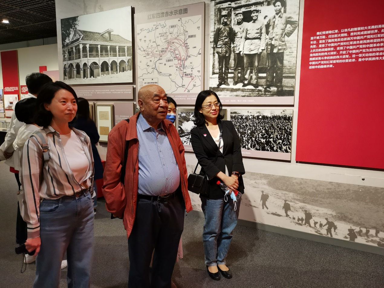 八十岁高龄的邱兆祥教授认真看完每一件展品,不时与身边的年轻老师分享对党史的体会。
