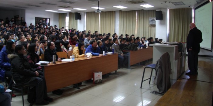 麦金农教授是当代金融发展理论奠基人、斯坦福大学经济系威廉依贝尔(William D. Eberle)国际经济学教授,也是我校兼职教授。他在国际经济学领域享有盛誉。78岁高龄的麦金农教授一出现就受到师生们的热烈欢迎。他坚持站着授课,思路清晰、娓娓道来,将讲座的主题一层一层展开。