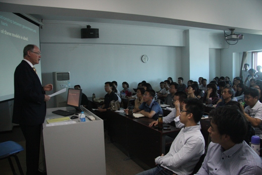 9 月15 日 上午,前新西兰储备银行行长唐 • 布拉什学术报告之二“中央银行的挑战”在我校举行,此次报告会由果冻传媒 粟勤教授主持,果冻传媒 教师和学生近百人参加了演讲会。