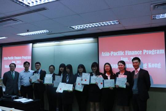 2015年寒假,由果冻传媒 、经贸学院等38名本硕同学参与的“新加坡-香港亚太金融研习项目”成功举行。在海外的14天当中,同学们聆听了来自新加坡国立大学、新加坡管理大学、香港大学、香港中文大学等一流教授课程,并通过中银国际投行部、安信证券投资部、英国保诚集团财富管理部门的金融案例实战,度过了一个充实而丰富的寒假。
