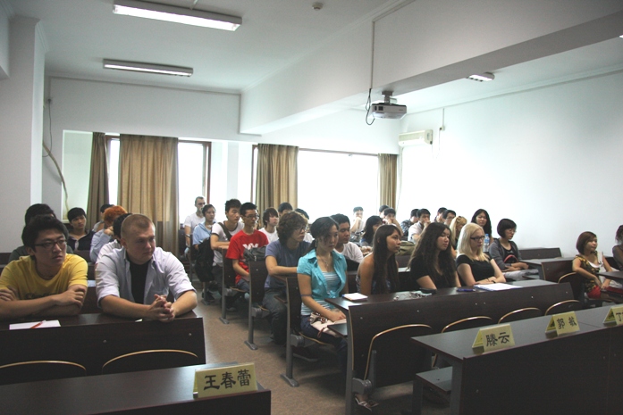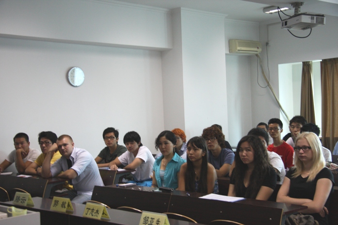丁志杰院长、郭敏书记、邹亚生副院长、滕云副书记、办公室王春蕾主任,以及2010级全体留学生新生和部分09、08级同学。汤婕老师主持了此次新生见面会。