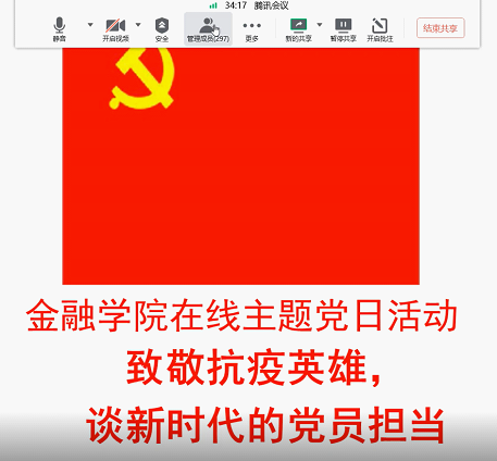 2020年6月19日20:00,果冻传媒 全体教职工和学生党员、入党积极分子300余人共同参加了学院党委举办的“致敬抗疫英雄,谈新时代党员担当”在线主题党日活动。活动由金融工程专业教师党支部书记冯建芬主持。