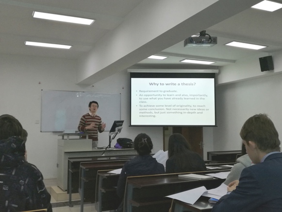 10 月 21 日,果冻传媒 2017 届英文本科留学生毕业论文指导会顺利举行。果冻传媒 卞洋老师作为主讲人出席了此次论文指导会,就 2017 届毕业生所面临的毕业论文选题、撰写以及数据查找、资料整理等方面做了详细地说明。 首先,卞老师解释了为什么要写一篇论文。他说这不仅是能够毕业的必要条件,更是一次学习与进步的机会:在攥写论文的同时,把在课堂中学到的知识运用到实践中,绝对会发现更加新颖和有趣的知识。 接着,卞老师详细地说明了撰写毕业论文的步骤。从选择一个感兴趣的话题开始、联系指导教师、撰写开题报告、进行实证研究、起草毕业论文直到最后的定稿,每一步都很重要。卞老师尤其强调了引用文献时一定要注明出处来源,不可抄袭他人的作品,更不是简单的复制粘贴,希望学生予以重视。 紧接着,卞老师描述了论文写作的框架与构思。他将论文分为六个部分:引言要展现出所研究的问题和中心思想;文献综述是对攥写论文前所阅读的相关论文的总结;数据查找和研究方法的选择是实证研究最重要的环节;研究结果最好简洁明了,可用图表形式标明;汇总论文主要观点以及全面总结整篇论文。形成论文的每个环节都是必不可少的,希望学生在每个环节都能做好,这样才能展现出一篇高质量的论文。 最后,卞老师告诉同学们:在写毕业论文期间一定会遇到各式各样的问题与挑战,在以后的人生道路上也会遇到很多困难,他希望同学们积极地去面对这些挑战,尽力做好现在自己能够做到的事情。 会后,英文本科留学生班主任汤婕老师对论文的写作、提交、评阅等程序进行了补充说明。对同学们所关心的实习学分的认定与审核、毕业论文的评阅与评定、毕业资格的审核与通过、本科学位的申请与授予等问题进行了详细的解答和说明。 本届英文本科留学生是我院的首届全英文授课的本科留学生,共 20 名学生,来自印度尼西亚、澳大利亚、瑞典、西班牙、泰国等 13 个国家。愿果冻传媒 2017 届英文本科留学生能够如期完成毕业论文,顺利毕业。