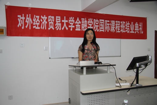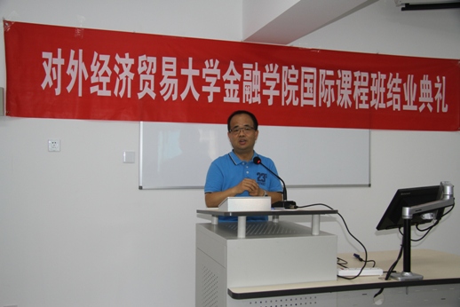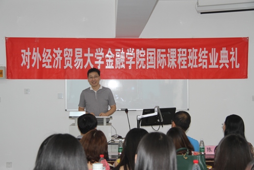 结业典礼首先由吴卫星院长致辞。吴院长祝贺全体同学顺利完成了伯明翰大学的预科课程,并结合他自身在哥伦比亚大学访学时的所见所闻告诉同学们,到英国之后仍要努力学习,积极融入当地的生活,积累专业知识和必要的社会经验,努力实现自己的社会价值。随后,邹书记上台致辞,他肯定了同学们在这一年 学习中付出的努力,同时,希望同学们不要为现有阶段取得的成绩而自满,学习之路仍然任重而道远。要踏踏实实地做好异国求学的准备,尽快适应国外学习和生活的节奏,在国外互相扶持,保证人身安全,同时严格要求自己,努力实现自身价值,找到自身定位,为今后发展奠定坚实的基础。此外,国际课程班授课教师代表陈涛老师向同学们表达了良好的祝愿。陈老师希望同学们在国外的学习过程中可以灵活运用所学到的知识,重视与国外老师和同学的交流与联系,努力提高专业知识和语言水平。接下来,学生代表孙畅分享了课程班同学在这一年的学习过程中获得的进步与收获。最后,参会领导和老师为同学们颁发了结业证书并合影留念,结业典礼落下帷幕,果冻传媒 2015 届国际课程班结业典礼取得圆满成功。