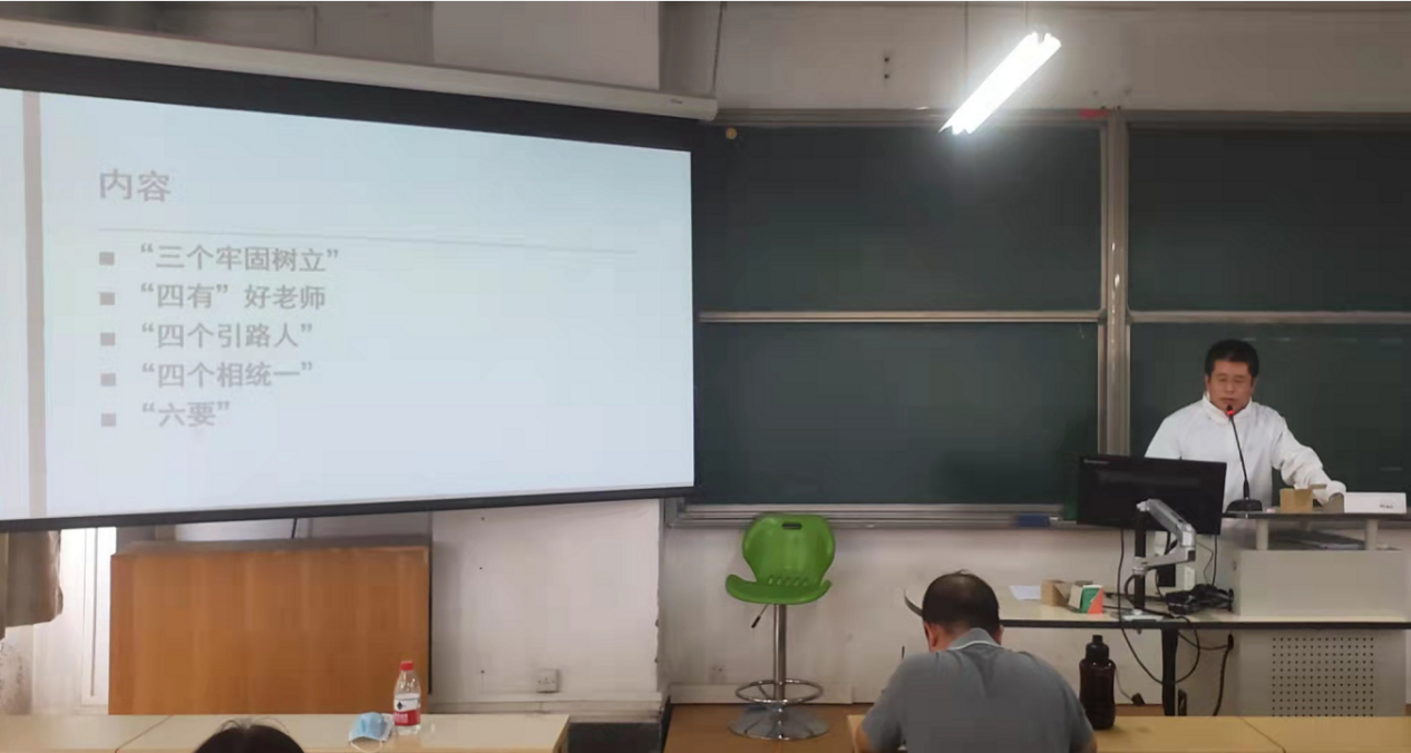 随后,学院党委书记齐天翔带领全院教师系统学习了习近平总书记关于师德师风的重要论述,就“三个牢固树立”、“四有”好老师、“四个引路人”、“四个相统一”、“六要”的由来和具体含义进行了阐释,并指出这些重要论述的核心是“四有”好老师。为此,齐天翔对2014年9月9日习近平同北京师范大学师生代表座谈时的讲话中关于“四有”好老师的重要论述逐字逐句进行了解读。他指出,“有理想信念、有道德情操、有扎实学识、有仁爱之心”是作为一个好老师的根本、前提、基础、关键,是好老师共同的、必不可少的特质。最后,齐天翔引用习近平在座谈讲话中的一句话与全院教师共勉:“好老师不是天生的,而是在教学管理实践中、在教育改革发展中锻炼成长起来的。衷心祝愿每个教师都能成为符合党和人民要求、学生喜欢和敬佩的好老师,希望每个孩子都能遇到好老师。”