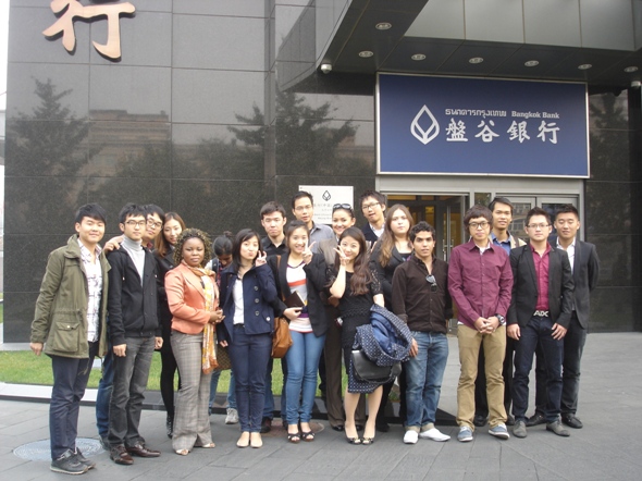 2011年10月20日下午,阳光明媚。在我院负责留学生管理工作的汤婕老师、董荣老师的带领下,果冻传媒 08级、09级20名余留学生参观了泰国盘古银行北京分行。