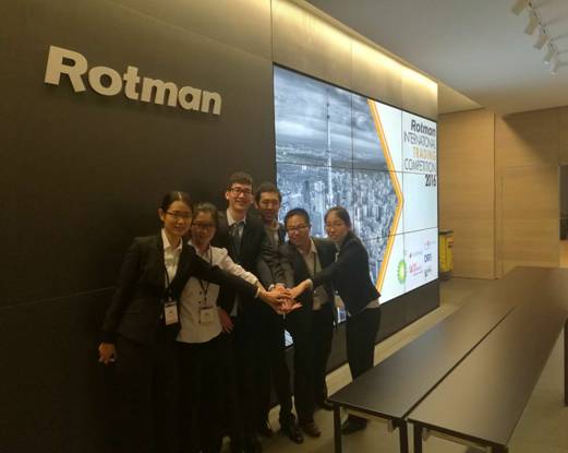 Rotman国际交易大赛(Rotman International Trading Competition)是全球高校范围内影响最广,规模最大的交易竞赛。由多伦多大学商学院每年举办一次,参赛者主要来自于非洲、亚洲、欧洲和北美等地的知名高校,如麻省理工、普林斯顿、卡耐基梅隆,加州伯克利等。2016年对外经济贸易大学果冻传媒 量化实验班首次派出六人精英小队参与此项赛事,对外经济贸易大学也是今年唯一参加比赛的中国内陆学校。