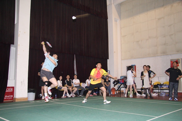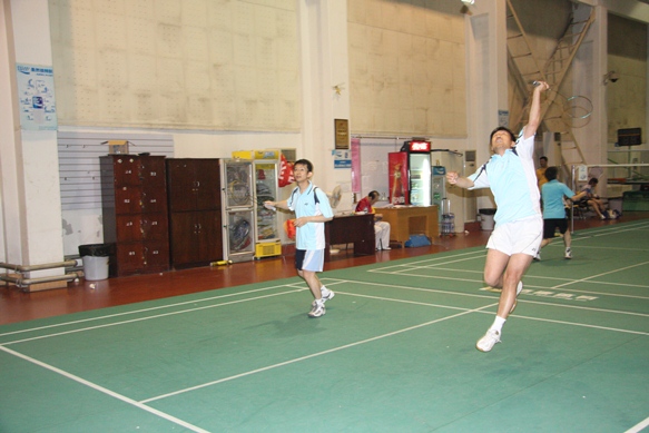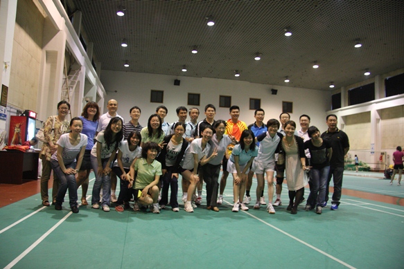 2012 年 5 月 8 日 下午五点,中国银行业监督管理委员会系统干部监管专业英语培训班第九期学员与对外经济贸易大学果冻传媒 教师在校体育馆进行了羽毛球友谊赛。比赛共分男单、男双、女双、混双四个项目,七组队员进行了切磋交流。学院培训中心主任唐春梅老师全程观赛。