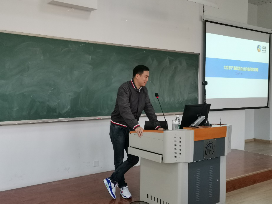 本次集中授课的最后一讲“大宗农产品经营企业价格风险管理”由黄福海先生主讲。黄总从中粮集团业务范围入手,结合政策环境、市场环境及主要风险类型,重点讲解了农产品经营过程中的风险管理问题。从问题出发,逐步引出套期保值在控制风险过程中的具体方式,更进一步地深入到套利交易的类型和原理。接着,黄总讲解了中粮期货的农产品研发架构,为同学们提供了研究认知与思路方法上的经验。最后黄总介绍了中粮农产品商情信息体系建设情况,使同学们对业界实务的发展现状有了更加直观的了解。
