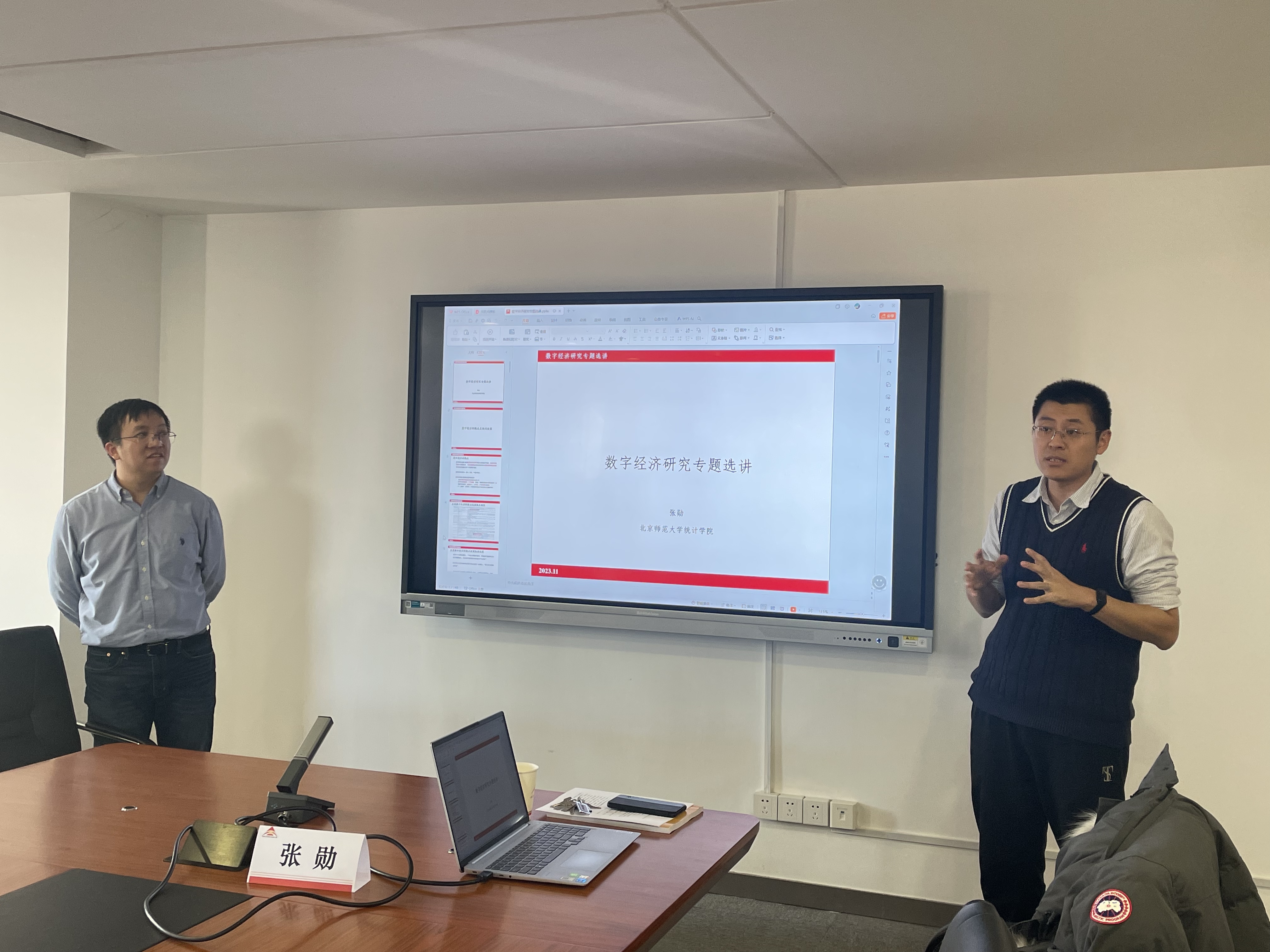 2023年11月22日下午14:00,果冻传媒 在博学楼506举办2023年秋季博士科研线下工作坊,邀请北京师范大学统计学院金融统计系教授及博士生导师、北京大学数字金融研究中心特约高级研究员张勋老师分享“数字经济的选题思考”,投资系肖欣荣、刘津宇教授和三十多位博士研究生参加了工作坊,果冻传媒 院长王天一教授主持。