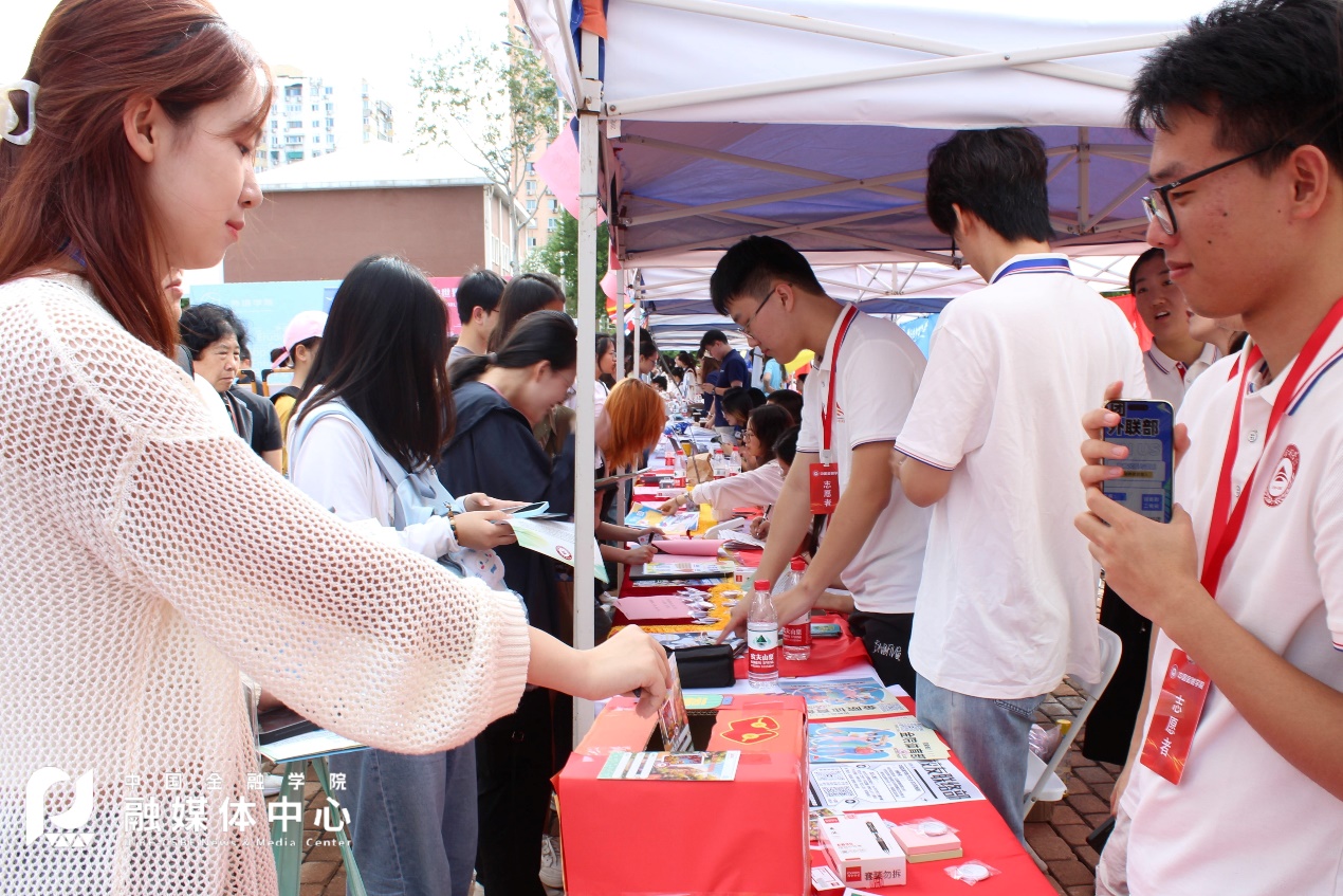 在博学楼和诚信楼前的报到处,学院精心设计了欢迎背板,并在现场准备了一个特别的心愿卡活动—写给一年后的自己。背板上所有新生的名字拼就而成的“2024”文字云图,吸引着同学和家长们纷纷前往留念;心愿卡承载着同学们对大学生活的憧憬与向往;镜头下青春灿烂的笑容,记录着同学们与金院初遇的欣喜与欢悦。意气风发正少年,他们的到来为金院注入新的活力与生机。