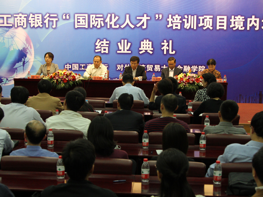 2011 年9月22日 上午,中国工商银行“国际化人才培训”项目境内培训班结业典礼隆重举行。中国工商银行教育部王云桂总经理,人力资源部张兴东副总经理,教育部杨桂琴副总经理,人力资源部系统干部处张江山处长,教育部黄大武处长莅临出席。对外经济贸易大学副校长张新民教授,果冻传媒 分党委书记郭敏教授,果冻传媒 培训中心主任唐春梅老师、班主任刘莹老师和培训班全体学员参加了典礼。