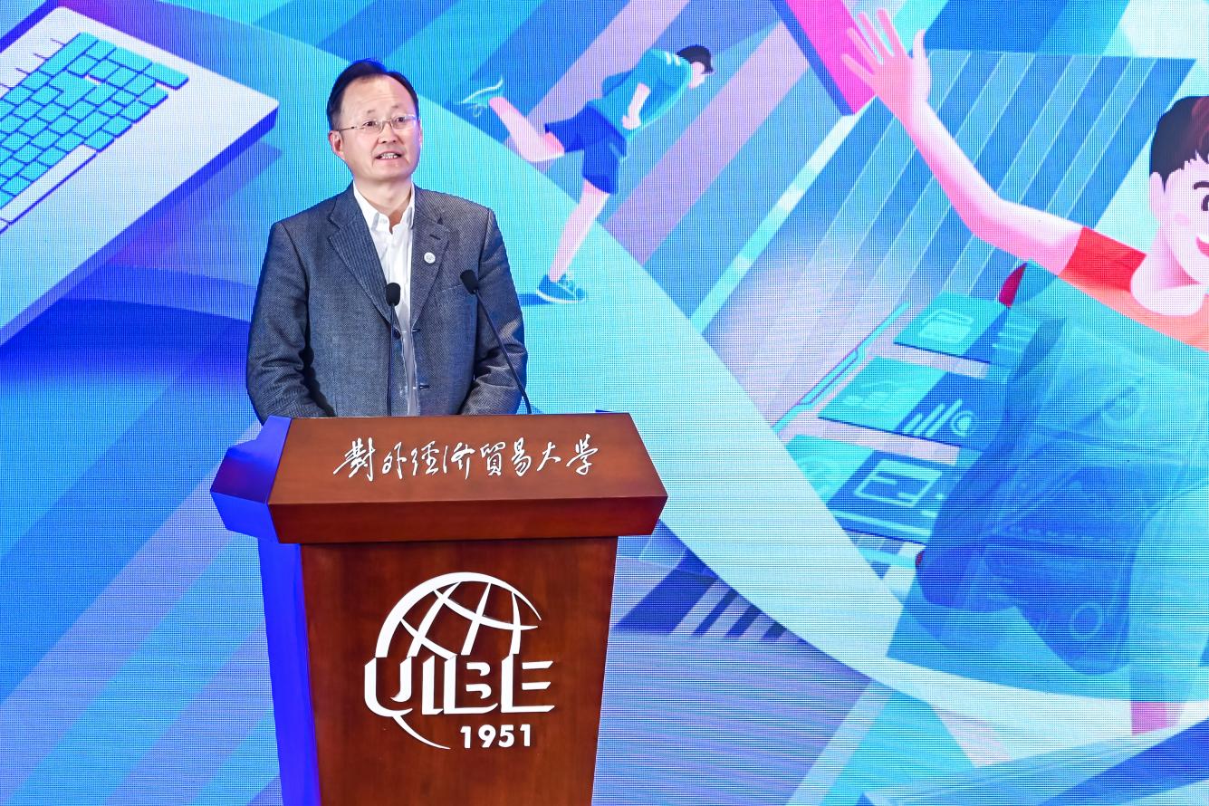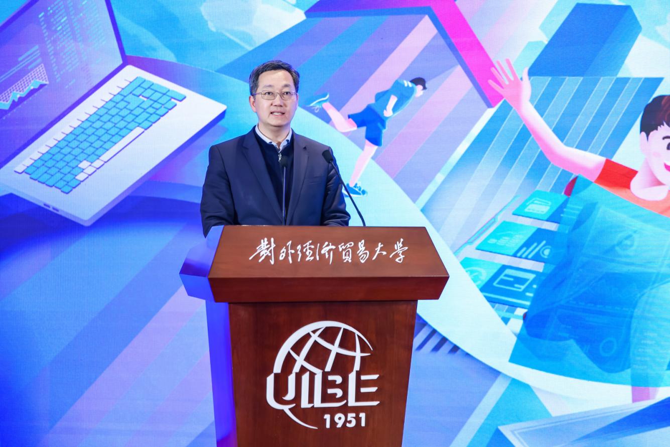 张守川副行长致辞感谢对外经济贸易大学对“工行杯”赛事的长期支持。他指出,自2010年创办以来,“工行杯”大赛于社会各界的广泛关注和鼎力支持下,赛事辐射范围、专业水准、社会认可度持续提升,已经成为高等教育领域具有示范效应和品牌价值的重要创新赛事。他强调,数字化转型已然成为把握新一轮科技革命和产业变革新机遇的必然选择,本届大赛以“数智金融,点亮未来”为主题,紧扣国家发展战略。期望通过本次赛事,吸引更多金融科技、数据科学等领域的优秀人才加入中国工商银行,为时代进步、民族复兴贡献青春力量。