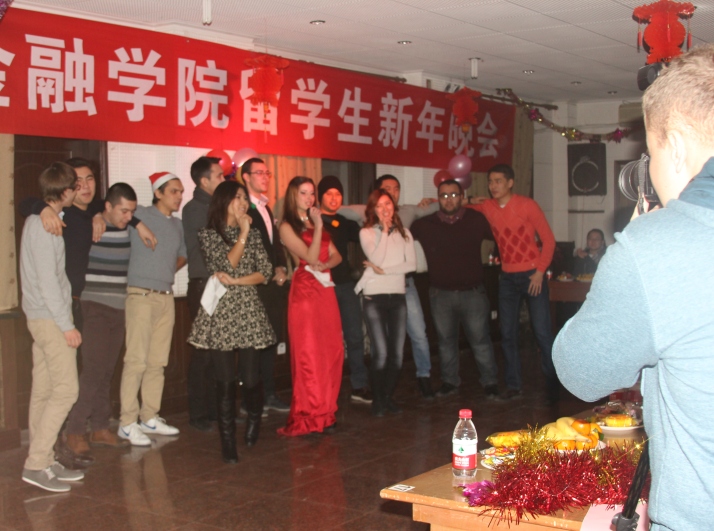 晚会过程中还进行了全勤奖颁奖仪式,对上一学年没有迟到旷课的学生予以表彰,全院共12名学生获此殊荣。此外,晚会中穿插了游戏和抽奖环节,极大地提高了在场同学的积极性和活跃度,使得整场晚会高潮迭起,精彩纷呈。在令人感动的《朋友》的歌声中,各国同学用自己国家的语言祝愿新年快乐,晚会圆满结束。会后学院领导和老师与留学生们亲切合影。整场晚会展现了各国留学生的风采,使留学生在中国提前度过了一个令人回味的新年夜。