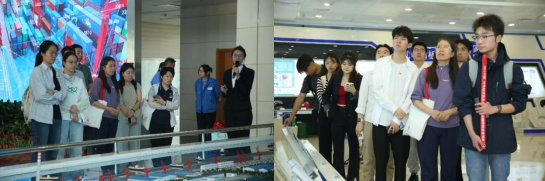 实践团队在当日上午7:00从学校出发, 11:00到达唐山曹妃甸首钢京唐公司园区,在京唐公司销售管理部负责人带领下,首先来到公司指挥中心。在这里,公司讲解员首先结合沙盘介绍了公司发展沿革、公司生产布局和发展成就,其次在展览大厅介绍了公司产品种类以及产品在工业建设、民用生活中的广泛应用。其中“园区占地面积超过澳门行政区面积”,“国内唯一拥有临海靠港的单体千万吨级钢铁企业”,“废水零排放,获评环保绩效评级A级企业,具备高效率、低成本、循环经济的生产运行系统”等介绍令师生颇感震撼。同时,师生还借机品尝到了公司自主研发完成的海水淡化制造的纯净水,感受到了国有企业双碳减排的责任担当。
