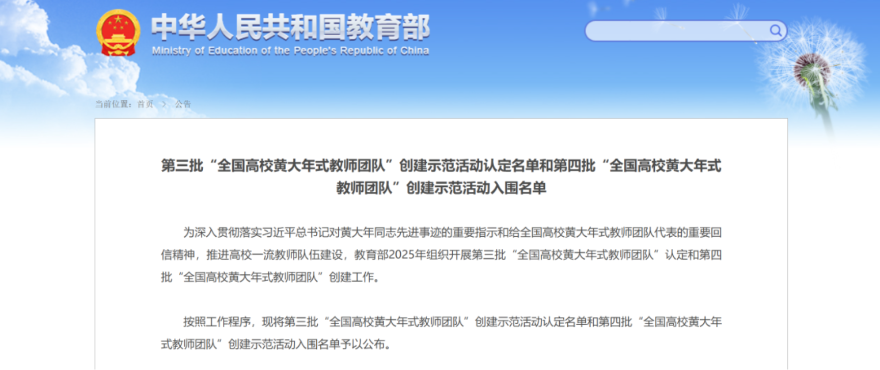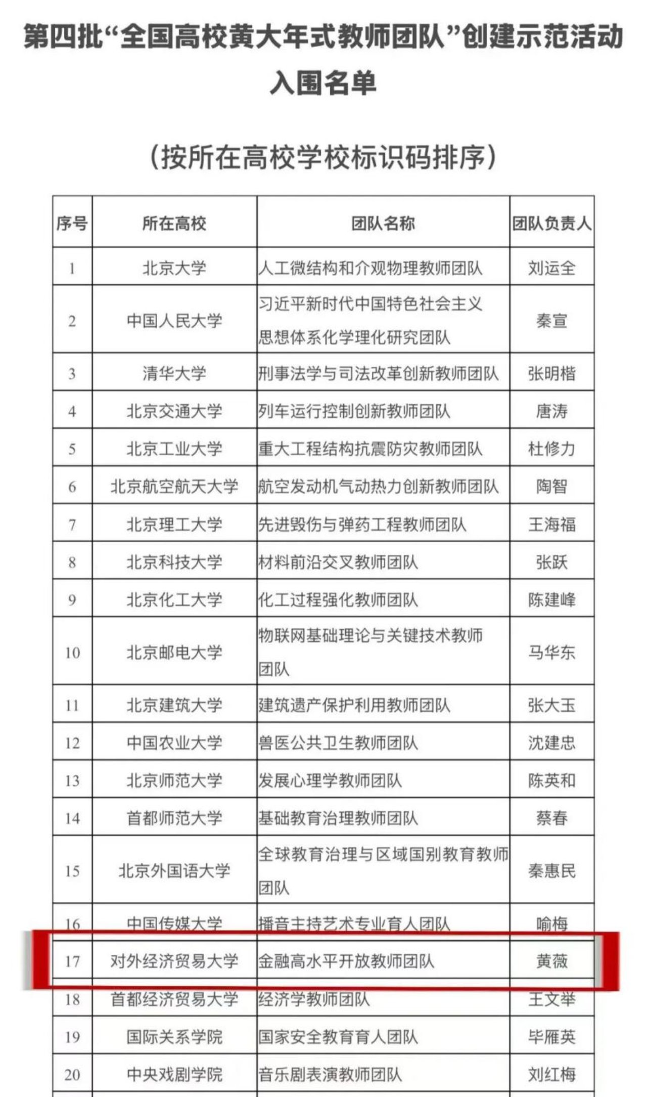 日前,教育部印发通知,公布第四批“全国高校黄大年式教师团队”创建示范活动入围名单,果冻传媒 “金融高水平开放教师团队”成功入选。