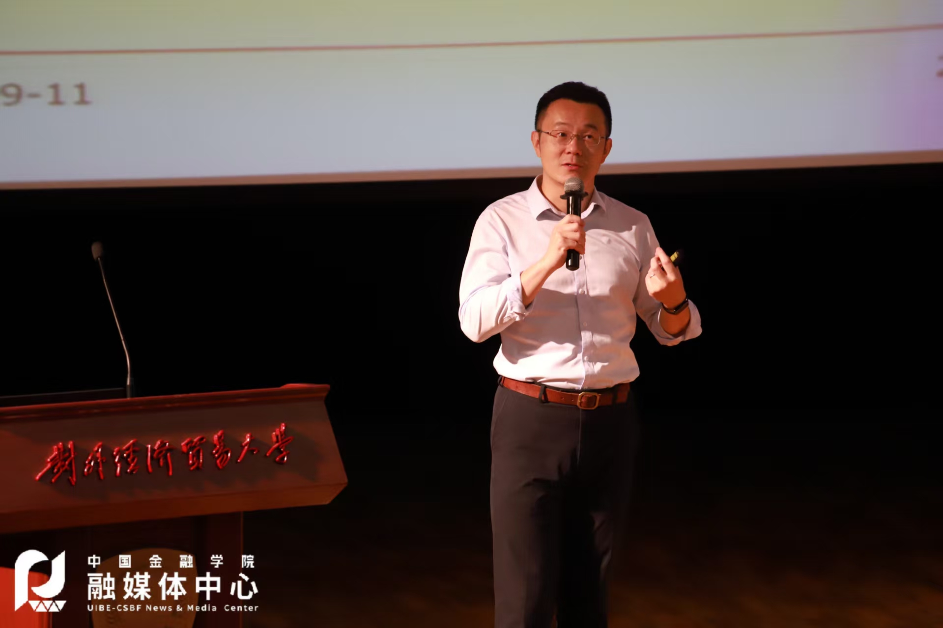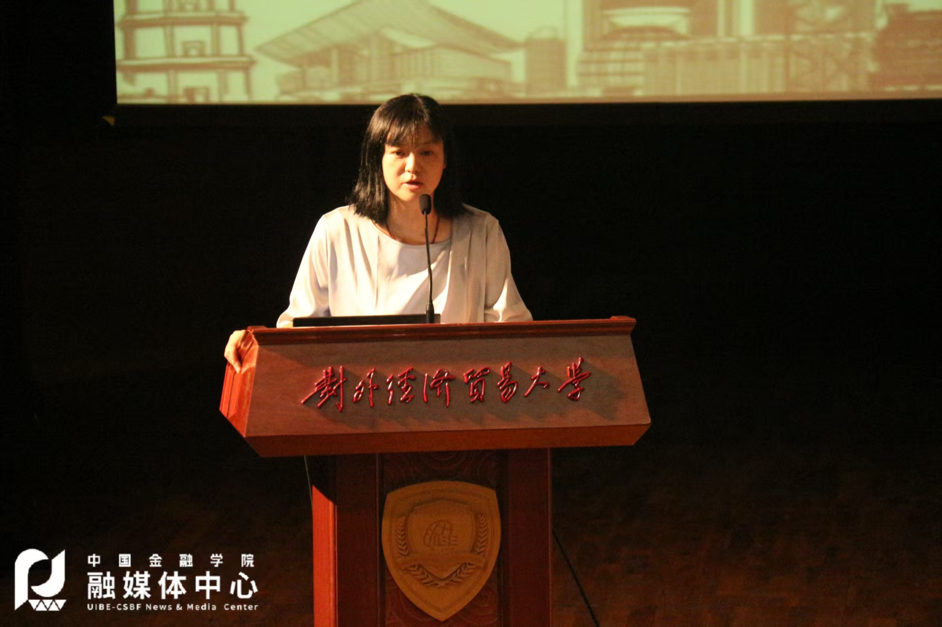随后,余湄教授作为教师代表为新生送上寄语。她结合自身多年的教学和研究经历,深情讲述了金融学科的魅力与责任。她指出,金融不仅是资源配置的工具,更是推动社会进步的重要力量。学习金融,不仅要掌握精深的理论和技能,更要理解其背后的社会价值和伦理内涵。