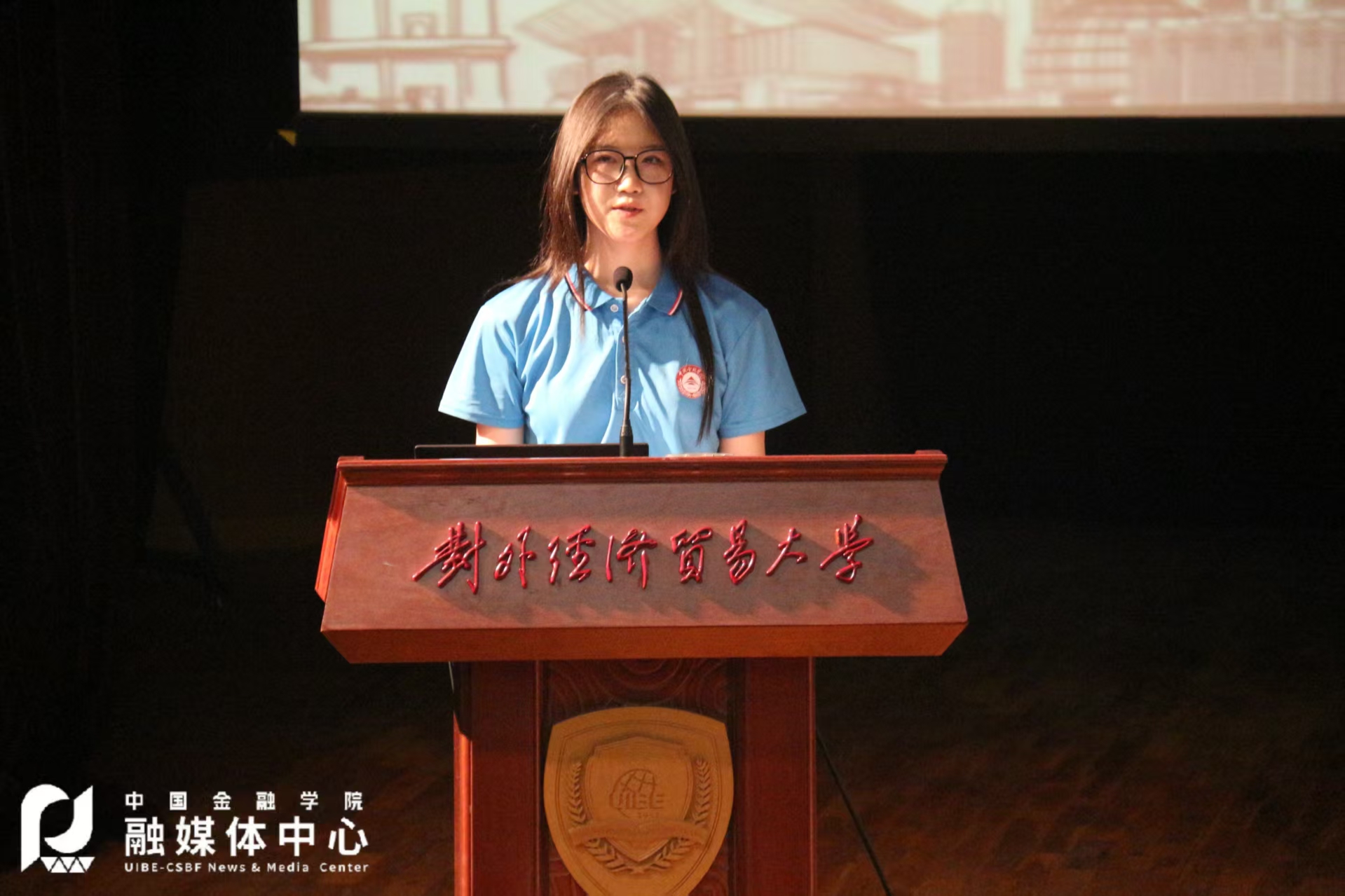 2025级新生钱炫晔作为新生代表发言。她分享了自己从高考到录取的心路历程,表达了对金融学科的浓厚兴趣和对大学生活的无限憧憬。她坦言,选择金融,是希望未来能与专业所学服务社会,助力国家经济高质量发展。她郑重承诺,将珍惜来之不易的学习机会,严于律己,勤奋刻苦,积极参与集体活动,努力成长为有理想、有本领、有担当的新时代金融人。她充满激情的发言,赢得了现场阵阵掌声。