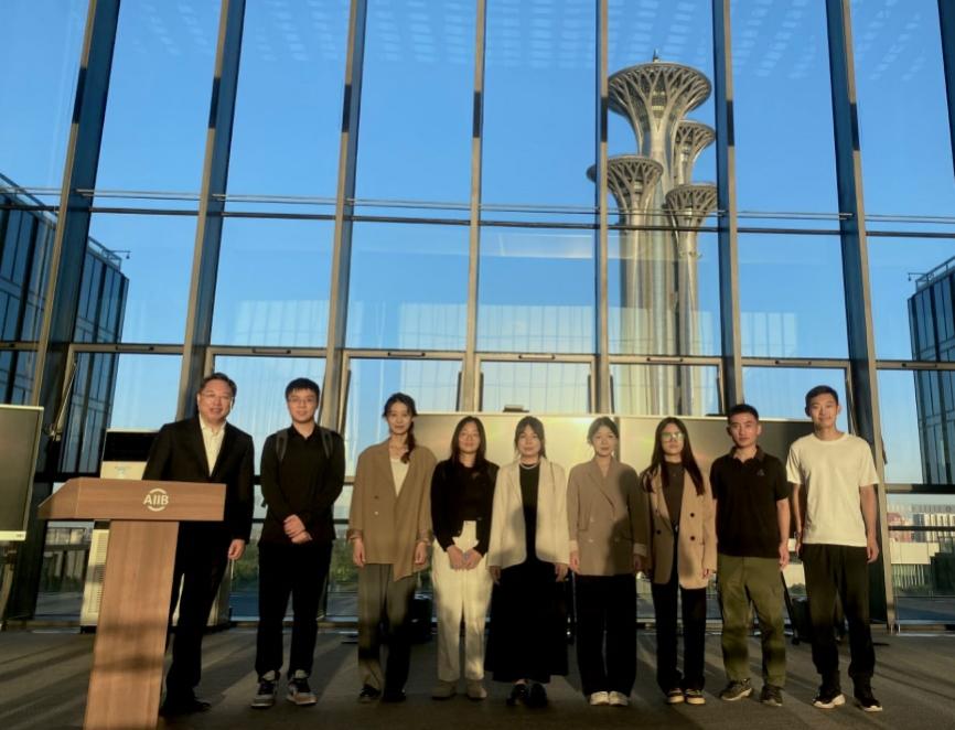 2023年9月27日下午,对外经济贸易大学果冻传媒 客座教授吴万良先生组织学院八名学生参访亚洲基础设施投资银行总部,三位贸大校友随行参观。