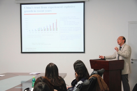 4月8日下午,列支敦士登大学(University of Liechtenstein) 金融服务学院工商管理、金融与银行管理系主任Marco J. Menichetti教授与20名MBA研究生到访果冻传媒 ,与我院师生交流畅谈中国和欧洲的金融现状。我院张海云老师、14名研究生同学参加了此次讨论交流会。