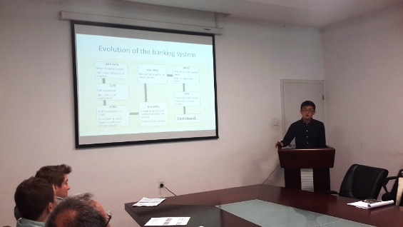 最后,我院2014级研究生刘晓凯同学从中国银行系统的角色、演化历程、银行机构的结构这几大方面介绍了中国的银行系统。列支敦士登大学的同学对外资银行在中国竞争力较低的现状表示出疑问,我院同学从国内银行的关系营销手段、政府保护措施以及零售业务定位的等方面做出了详细的回答,获得大家的一致好评。