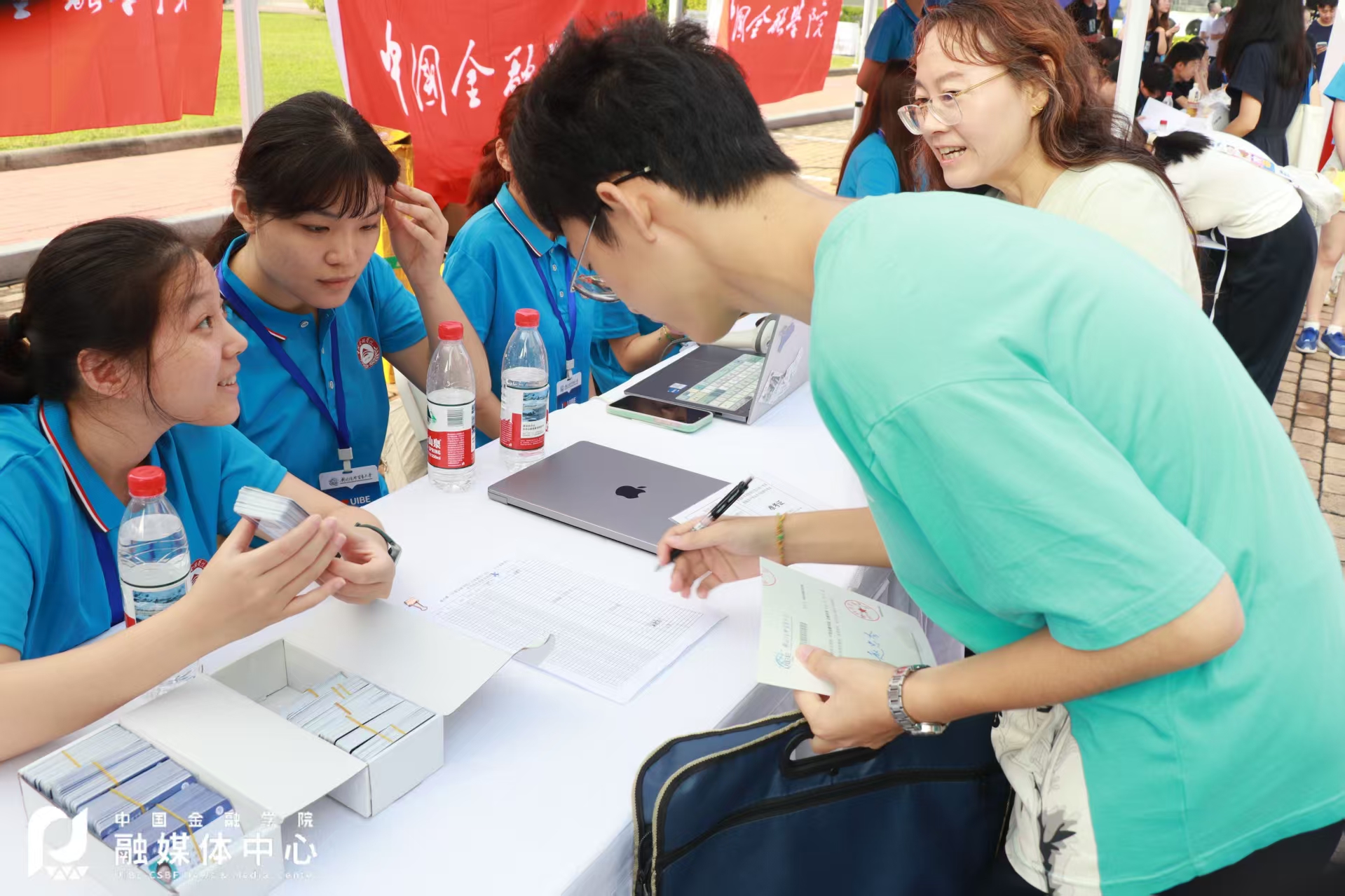 迎新,既是温暖的相遇,也是希望的播种。今年,升级款“金融牛”主题合影区成为新生打卡热点;“我是第XX支追逐梦想的青春股”专属计数打卡环节,让新生在互动中感受校园热情。恰逢中国人民抗日战争暨世界反法西斯战争胜利80周年,学院把握重要时间节点,将爱国主义教育融入迎新全过程,鼓励新生递交入党申请书,引导有理想、有担当的青年学子主动向党组织靠拢。