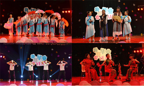 2010级毕业晚会融传统和创新于一体,以“考试试卷”形式设计的节目单到,从综艺节目中汲取灵感的独特主持风格、内容丰富形式多样的节目表演,无不令人耳目一新。开场舞《你叫什么名字》火辣动感,活力四射,在晚会开始就将气氛带向了小高潮,冯依云等表演者动人的身影在舞台上展现着青春的美丽和光彩;烟雨青衫,裙裾飘扬,柔情似水又不乏英气的古典扇子舞《床前明月光》为舞台平添一抹江南的温柔;可爱活泼,流行时尚,丁可等人带来的男女组合舞《shake it》点燃了热情,获得阵阵掌声;别具一格,创意十足的集体舞表演《cry cry》震撼全场;还有学生组合SAO在舞台上尽情热舞,潇洒肆意的舞姿和神秘的面具元素巧妙融合在一起。五支舞蹈风格迥异,却同样精彩动人。