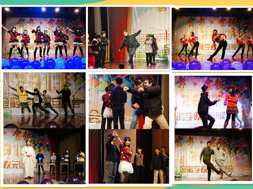 2012 年12月16日18:30,果冻传媒 2013元旦晚会“金年·金起点”在大学生活动中心如期上演。果冻传媒 院长丁志杰,分党委书记兼副院长吴卫星,分党委副书记王春蕾,分团委书记王祖瑞,各年级辅导员及部分教师出席了晚会,与同学们欢聚一堂,共迎新年。